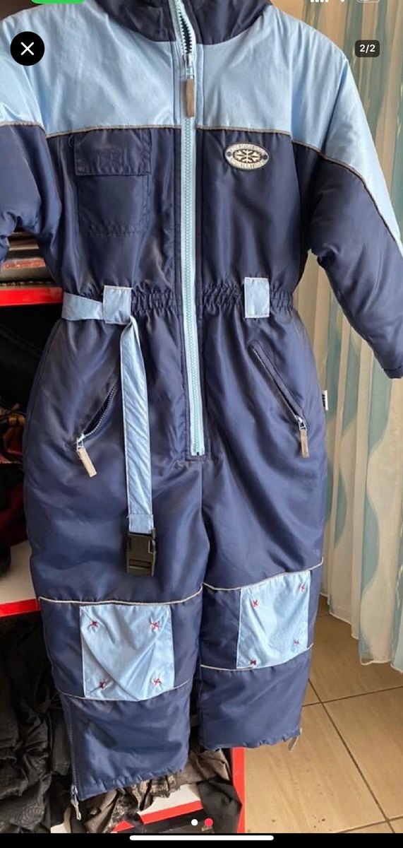 Koyu mavi renkli, fermuarlı cepleri ve nakış detayları olan bebek kayak tulumu. Yumuşak ve sıcak tutan kumaştan üretilmiştir. ❄️