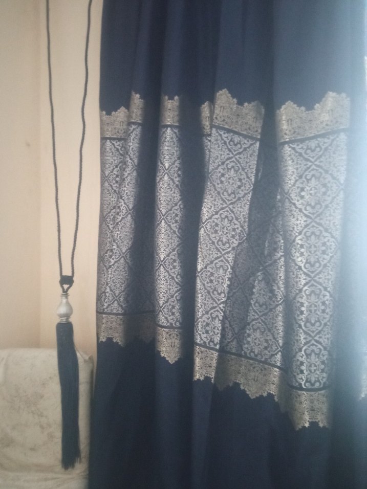 Koyu Mavi Nakışlı fonPerde