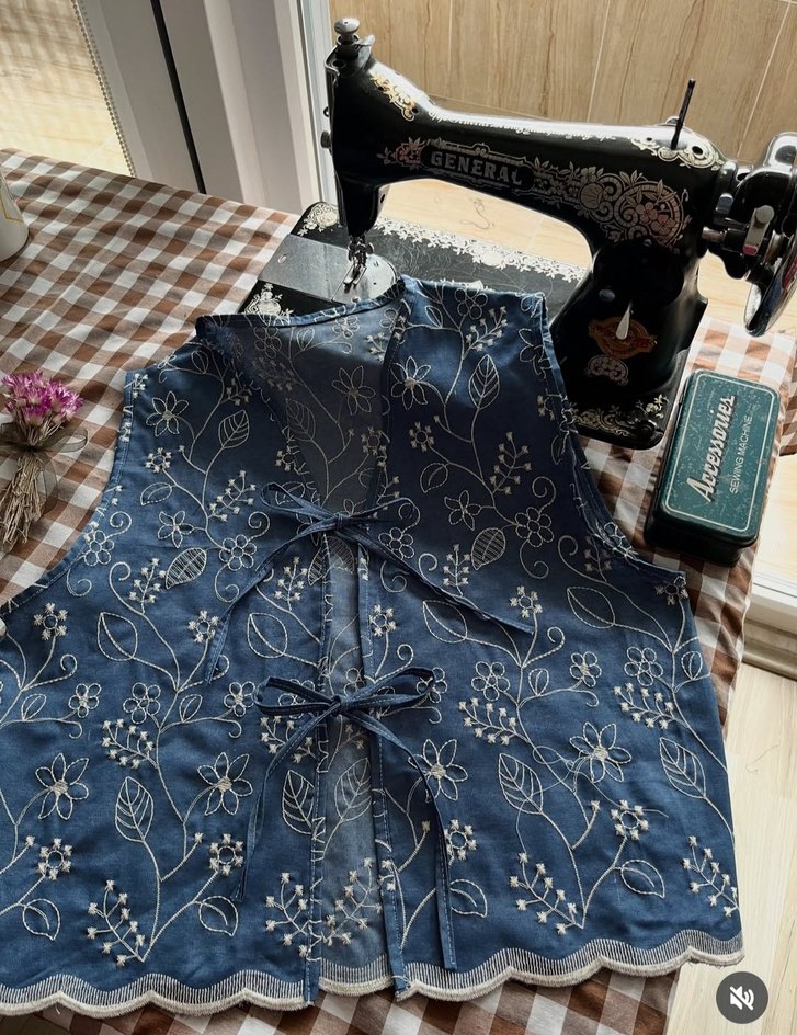 Koyu mavi nakışlı yelek 1_2 bedenden oluşmaktadır