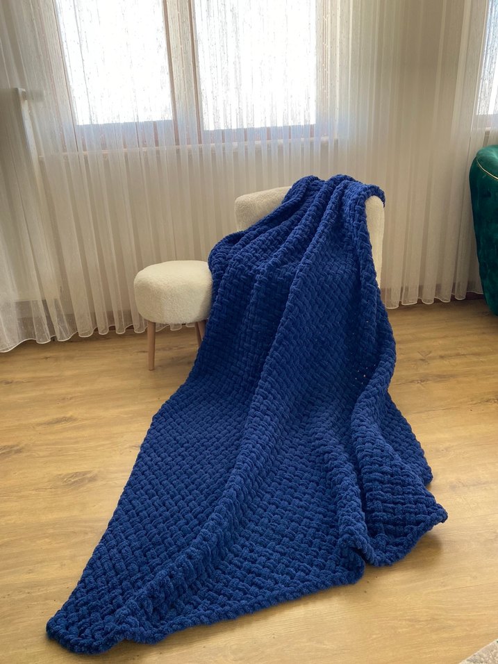 Koyu Mavi Örgü tek kişilik Battaniyesi
