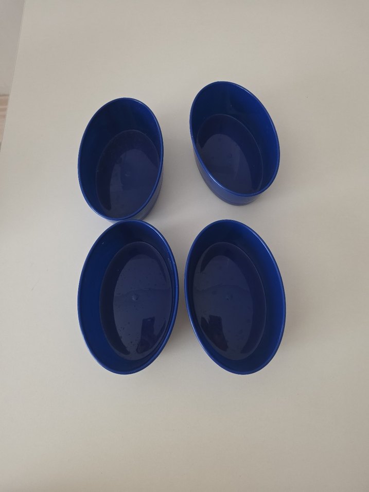 Düzgün ve dayanıklı malzemeden yapılmış koyu mavi oval 4'lü saklama kapları seti.