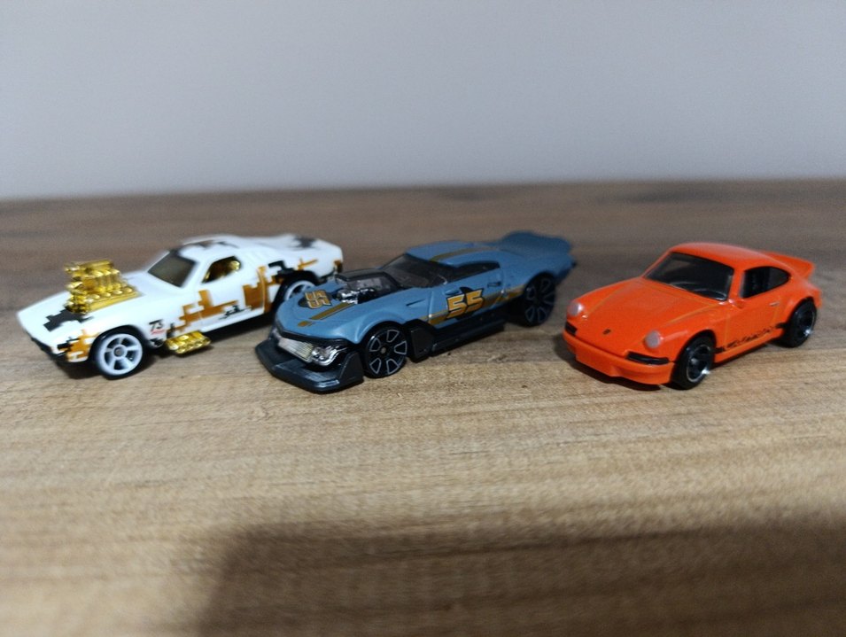Koyu mavi renkte, detaylı tasarıma ve siyah tekerleklere sahip oyuncak araba.