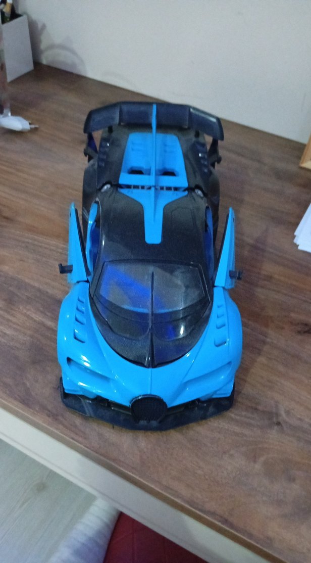 Koyu mavi renkli oyuncak araba, detaylı tasarım ve açılabilir kapılar içerir. Dayanıklı malzemeden yapılmıştır.