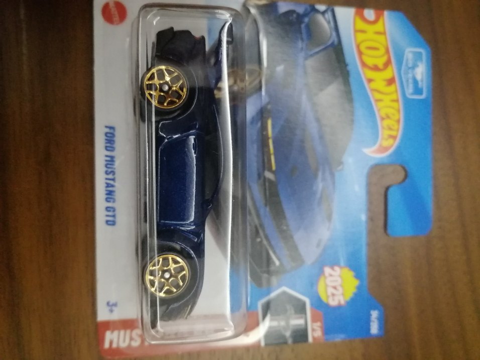 Koyu mavi renkte Hot Wheels oyuncak araba, altın renkli jantlara sahip detaylı tasarım sunar.