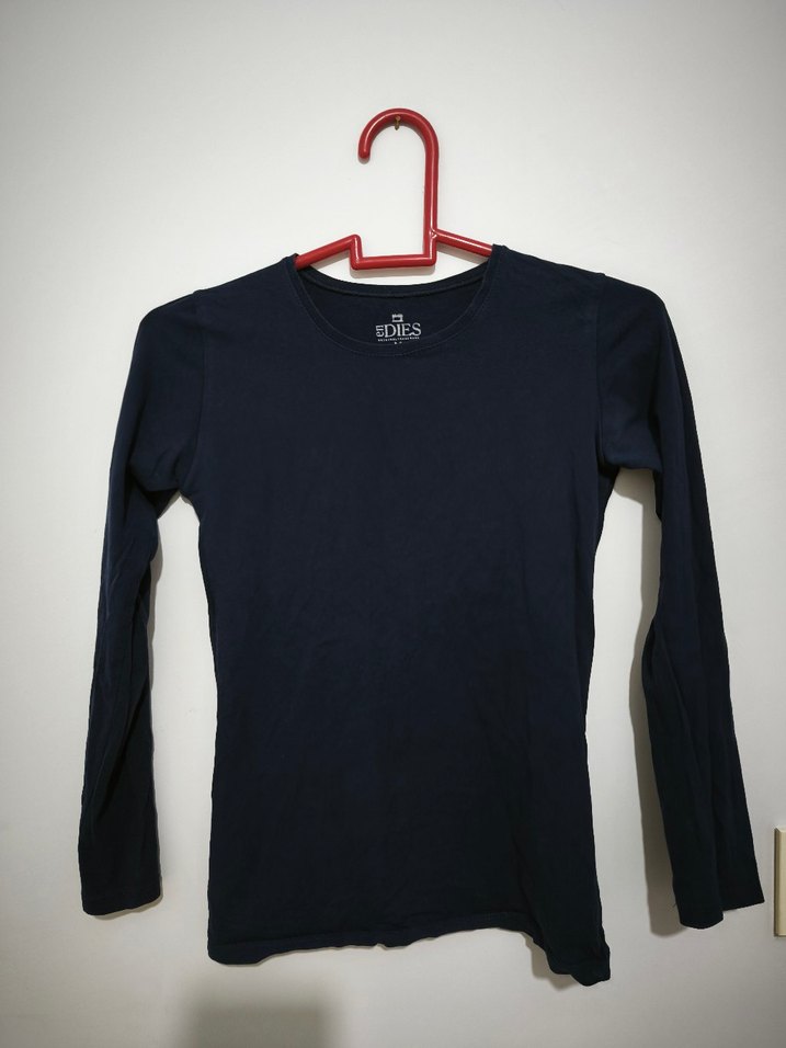 Koyu mavi renkte, pamuklu kumaştan yapılmış, uzun kollu ve bisiklet yaka kız tişörtü. Düz, desen içermeyen, dar kesim bir modeldir. Marka ismi "EDIES" etiketlidir.