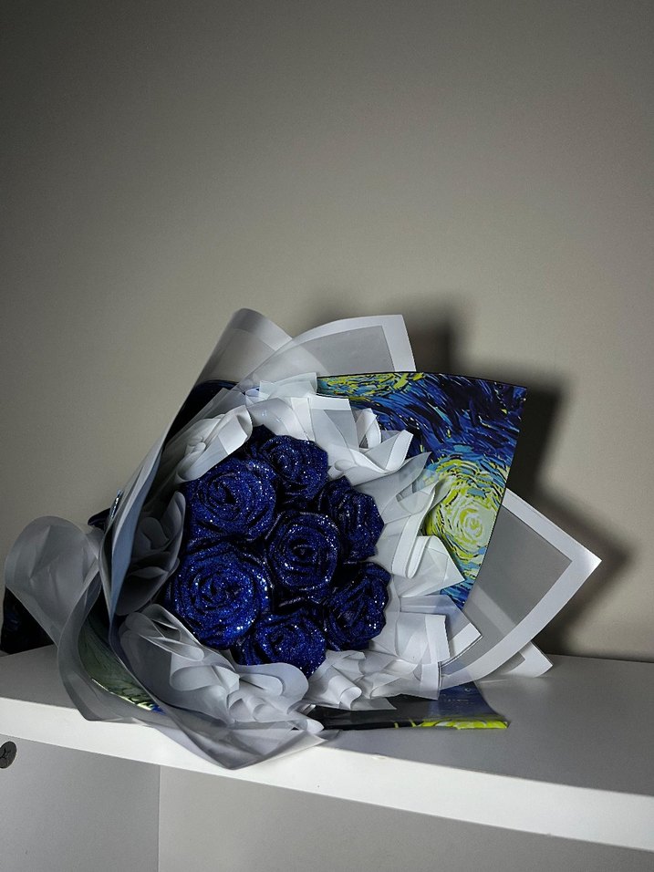 7 Adet lacivert simli kurdele gül buketi istediğiniz adette istediğiniz renkte yapılır.