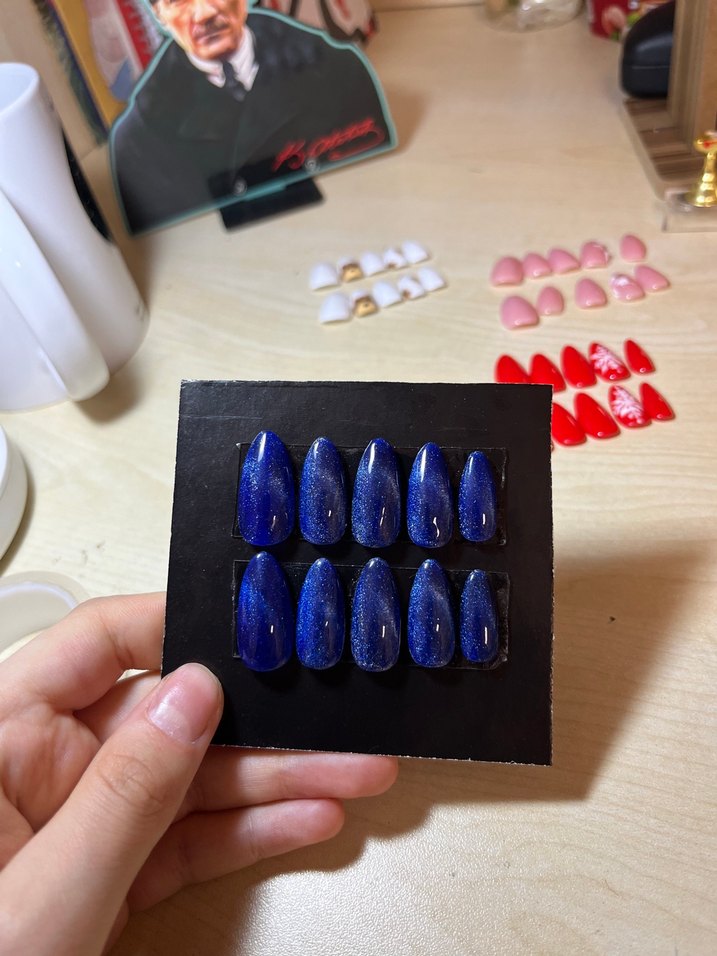 Koyu mavi,kedi gözü nail artlı el yapımı takma tırnak seti.