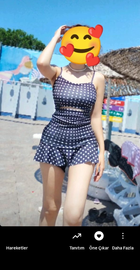 Koyu mavi renkte, beyaz puantiyeli, ince askılı ve etek kısmında fırfır detaylı, mini boy kesime sahip, vücuda oturan mayo.