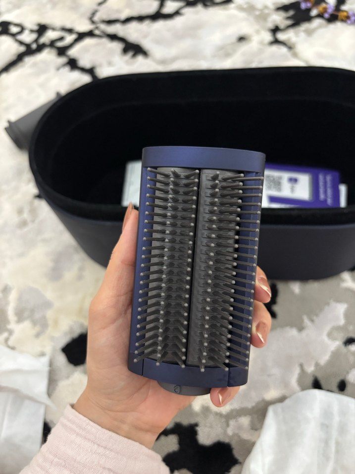 Yoğun kıllara sahip koyu mavi saç şekillendirici fırça, saçları kolayca şekillendirir. Kompakt ve ergonomik tasarım sunar.