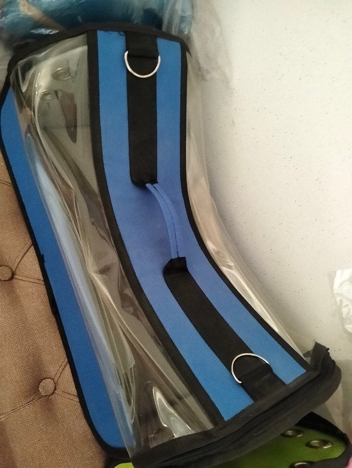 Koyu mavi renkte, şeffaf gövdeli ve siyah şeritli taşıma çantasıdır. Metal halkalarla donatılmıştır, küçük evcil hayvanlar için uygundur.