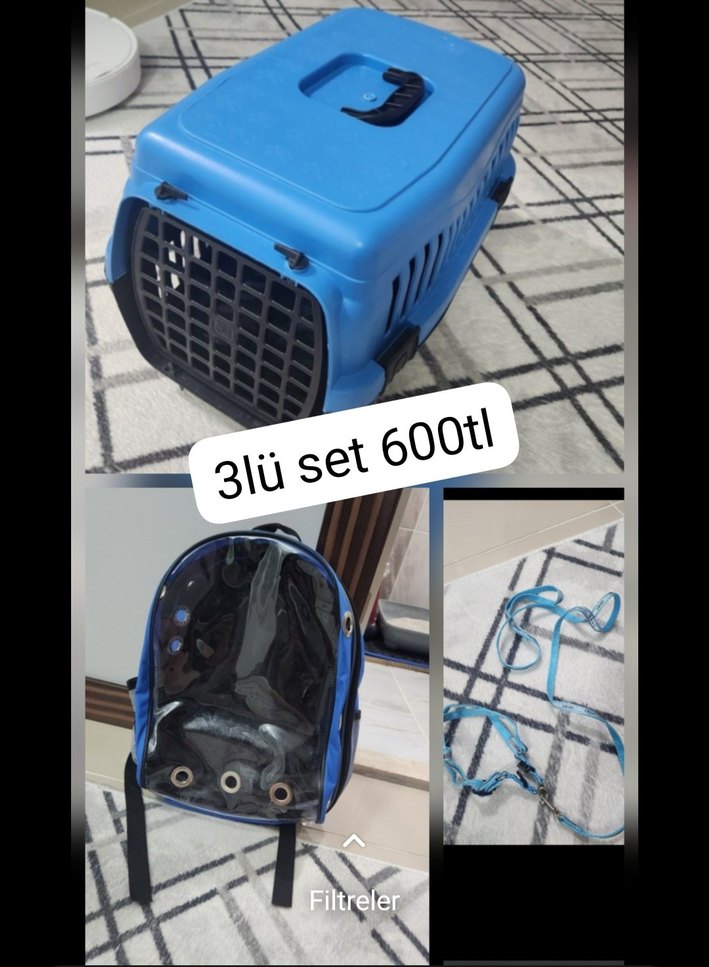 Koyu Mavi Sırt Çantası Evcil Taşıyıcı kutu ve tasma3lü set