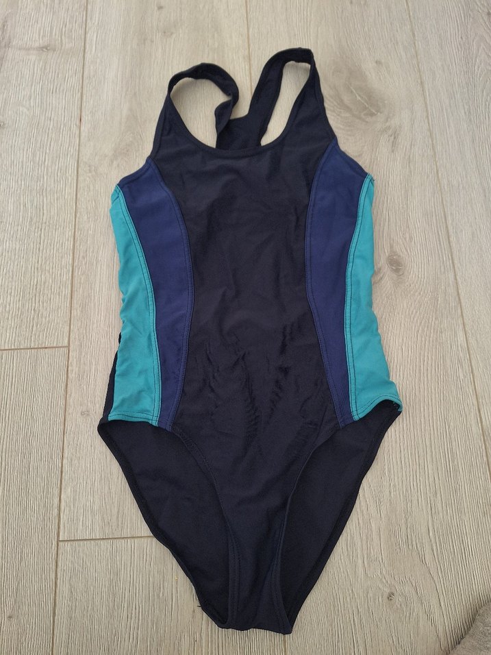 Koyu mavi renkte, yanları açık tonlarda panel detaylı, spor kesim ve kolsuz kadın mayo. Normal midi boyunda, sade ve desen içermeyen tasarımıyla plajda şık ve rahat kullanım sunar. ️