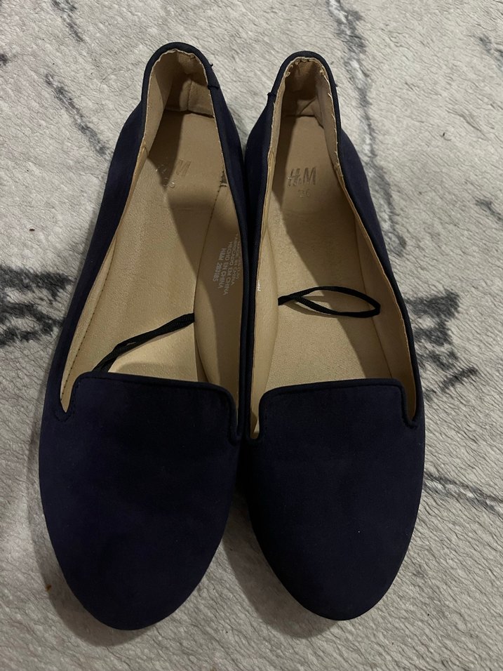 Koyu mavi süet dokulu, dolgu topuklu kadın babet. Günlük kullanım ve sokak stili için uygundur. Rahat ve şık görünüme sahiptir.