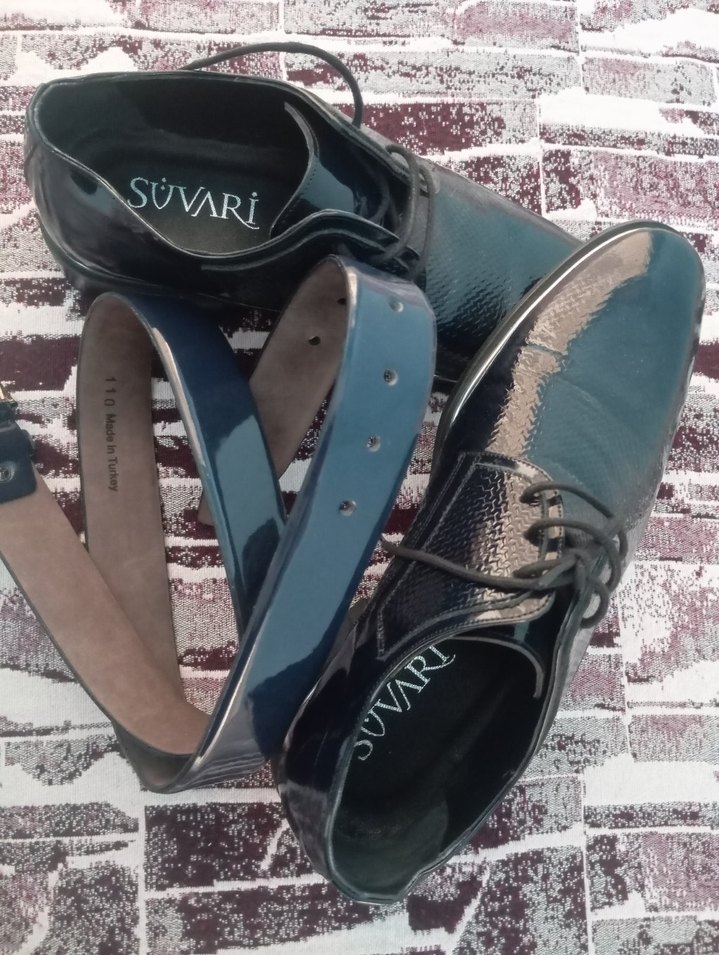 Suvari marka, koyu mavi yılan desenli, tokalı erkek klasik ayakkabı. Kauçuk malzemeden, sokak stiline uygun.
