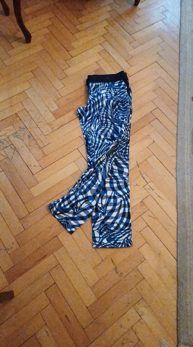 Kadınlar için koyu mavi zebra desenli, ve likrali kumaştan uzun tayt. Günlük kullanım için uygun, avant-garde sokak tarzı uyumlu.