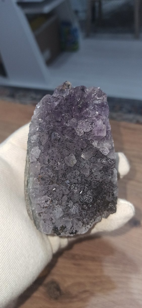 Doğal, pürüzlü yüzeye sahip koyu mor kristal taş. Parlak doku ve düzensiz şekliyle koleksiyon veya dekorasyon için uygundur. 8 cm 460 gr AMETİST NATUREL DOĞAL HAM TAŞ