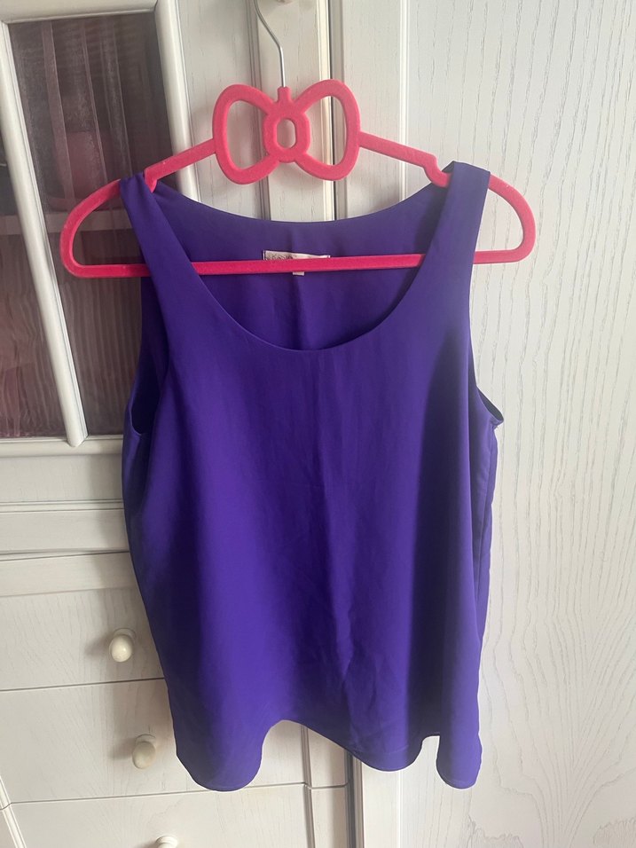 Koyu mor renkte, fiyonk şeklinde üst kısmı ve sağlam askı kancası olan bir askı.