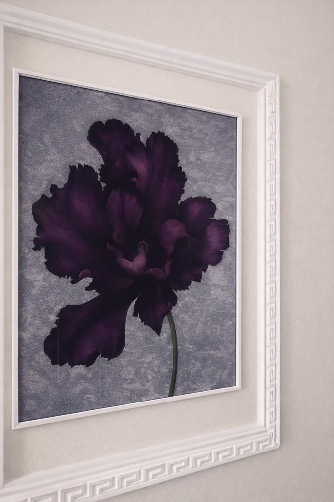 Koyu mor renkte bir çiçek ve yeşil sapın yer aldığı, dokulu gri arka plan üzerine yapılmış beyaz çerçeveli tablo. 2’li olarak satılmaktadır. Cam ve kenarları metal gümüş çerçeve