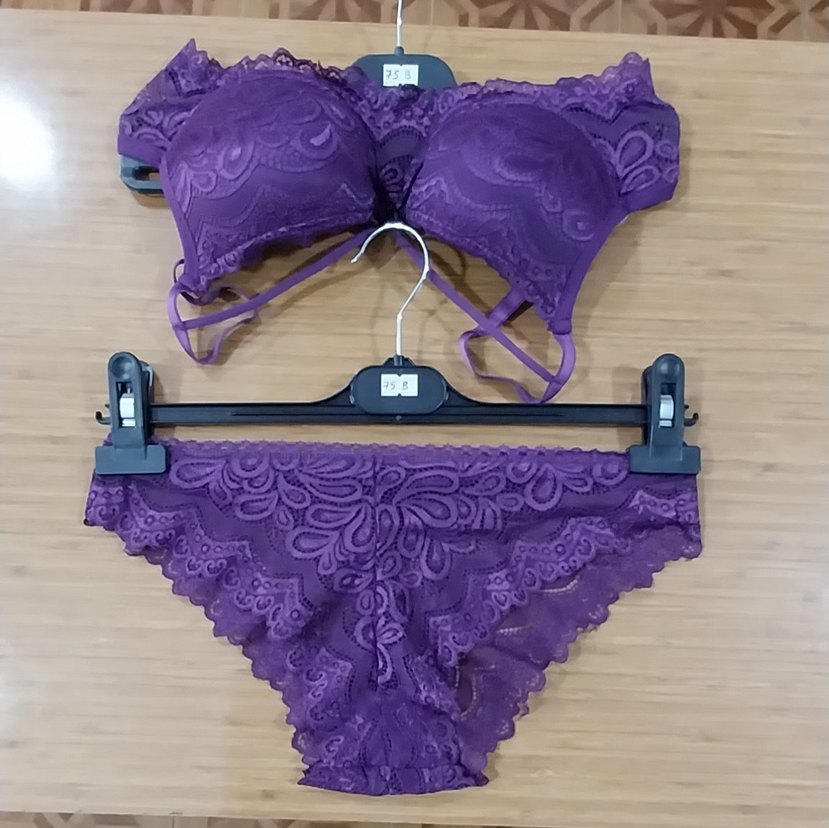 Koyu Mor Dantel Göğüs Korse ve Külot Takımı