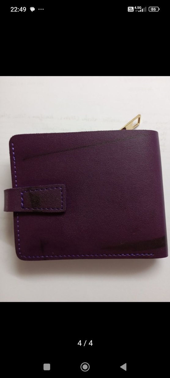 Koyu mor deri kadın cüzdanı tokalı kapama ve desen içermeyen sade tasarıma sahiptir, günlük kullanıma uygundur. arkasında sadece siyah leke var.