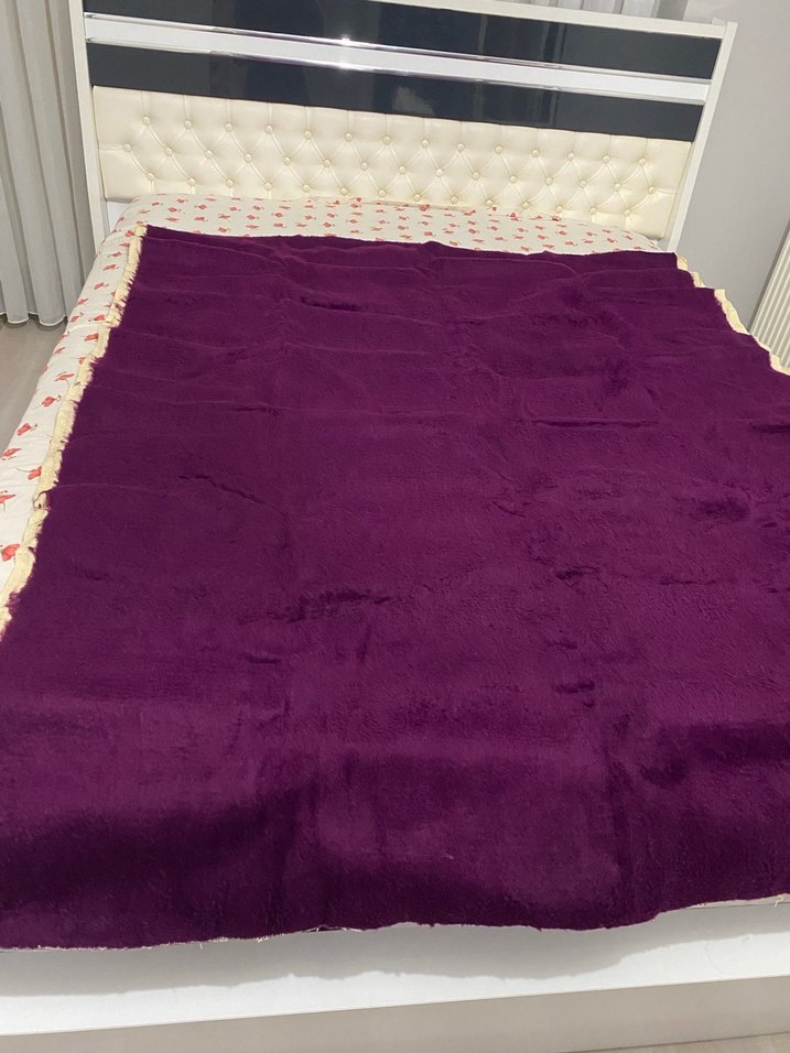 Koyu mor renkte, düz desenli ve yumuşak dokulu yatak örtüsüdür. Yatak odasına sıcaklık ve renk katar boy:180 cm genişlik:145 cm