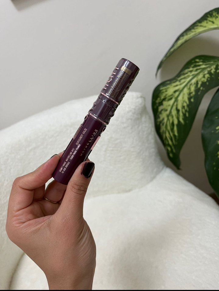 Kirpikleri belirginleştiren koyu mor maskara, canlı renk ve hacim sağlar.
