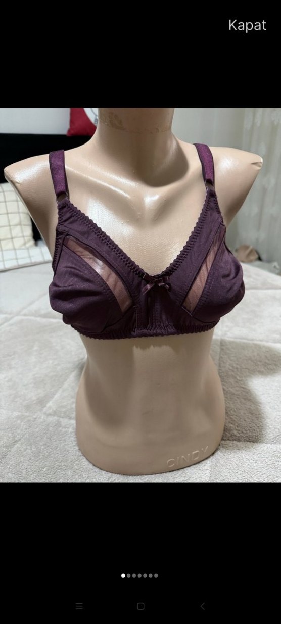 Koyu mor renkte, minimalist tasarımlı, tül detaylı ve ayarlanabilir askılı sütyen. Normal uzunluktadır ve desensizdir.