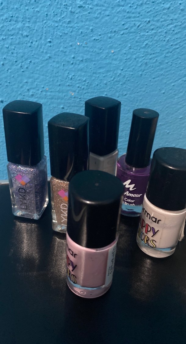 Parlak bitişli koyu mor oje, çeşitli oje koleksiyonunun bir parçası.