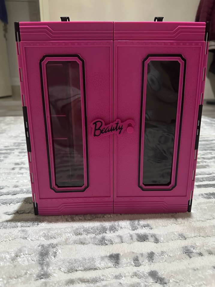Barbie Kıyafet Dolabı. ÜRÜNÜN İÇ KAPAKTA DEFO VAR ÇEKTİM. BAŞKA BİR PROBLEMİ YOKTUR RAFLAR SAĞLAM KULLANILIR HALDE FİYATA YANSITTIM