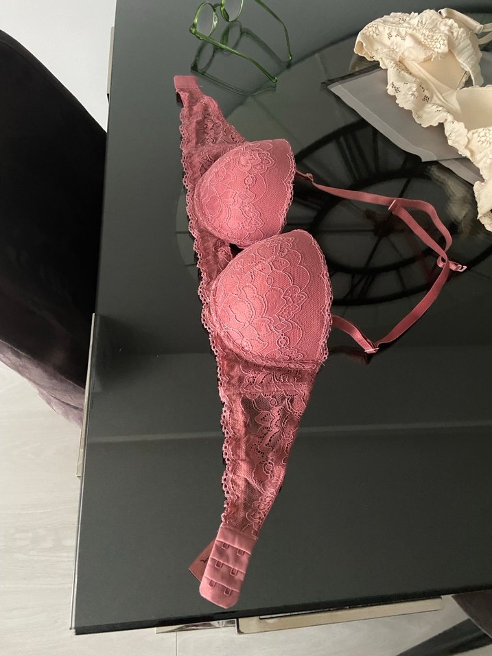 Koyu pembe renkte, dantelli ve bohem tarzda rahat sütyen. Ayarlanabilir askıları ve kancalı kapanışı bulunur.