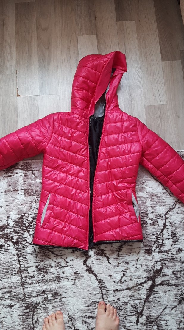 Koyu Pembe Kapüşonlu Kadın Kışlık Mont