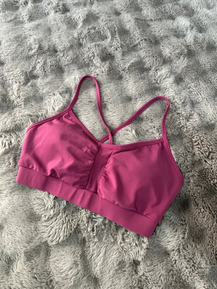 Koyu pembe renkte, ince askılı ve normal boyda, spor ve sokak stiline uygun sade tasarımlı sütyen.