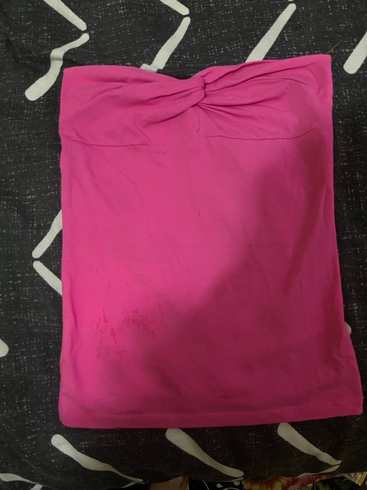 düz desensiz koyu pembe üst kısmında hafif bükümlü detay bulunur.xs beden