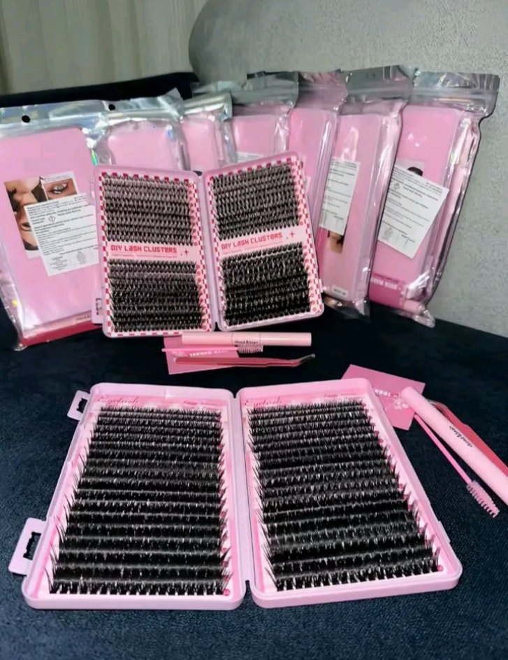 Koyu pembe renkte takma kirpik seti, kolay kullanım için birden fazla tepsi ve aplikatör içerir. Canlı renklerle göz görünümünü artırır.