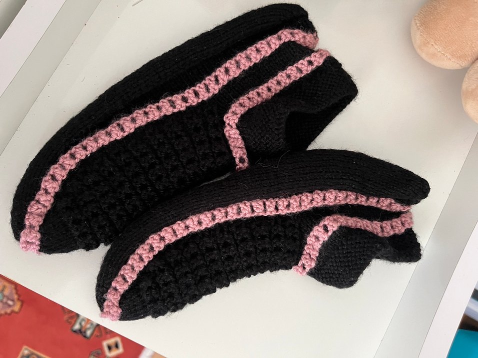 Koyu pembe triko kız ev terliği, yumuşak örgü dokusuyla gotik tarzda, trend belirleyiciler için rahat ve şık.