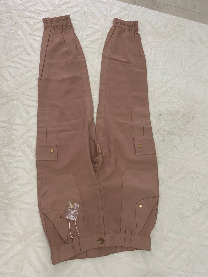 düğmeli, midi boy, bol kesim kadın pantolon. Günlük kullanıma uygun rahat bir model.