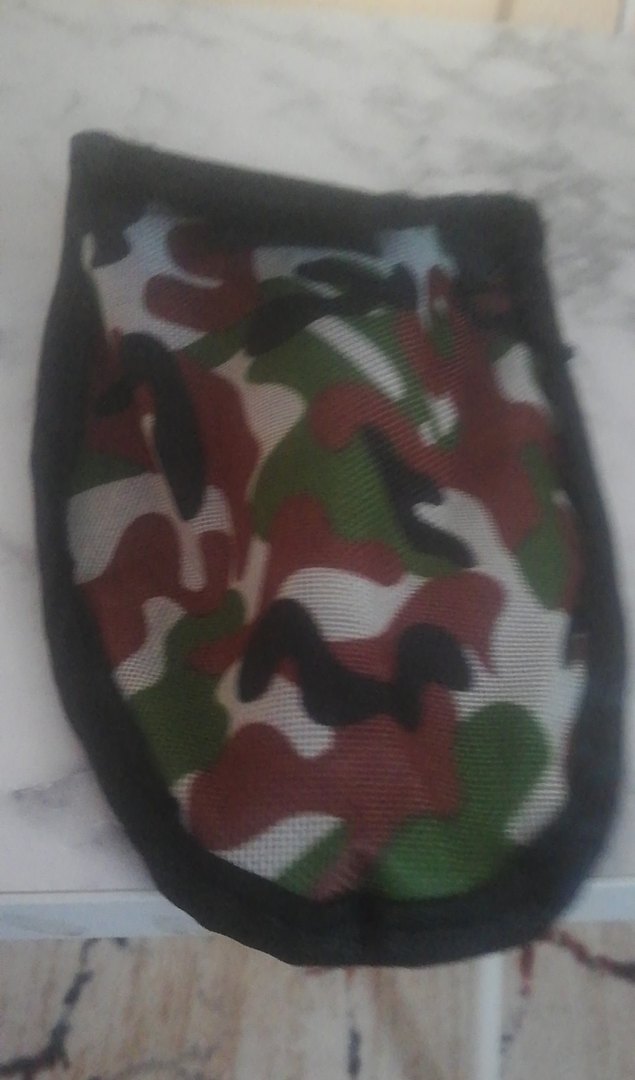 Koyu renk çoklu kamuflaj desenli, ısıya dayanıklı kumaştan fırın kılıfı