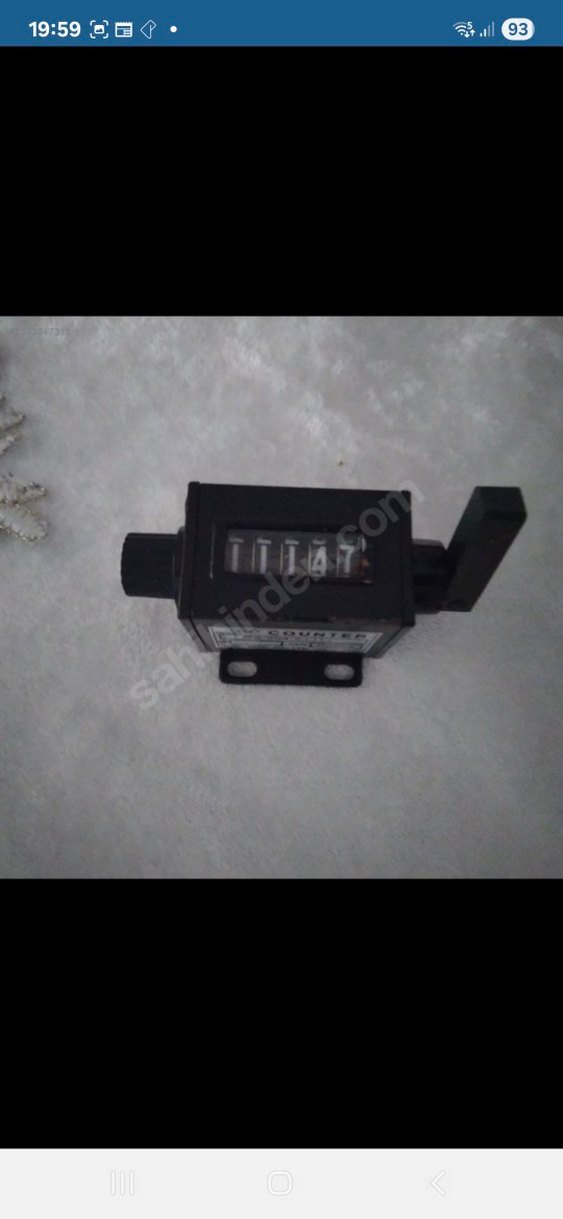 Döner kolu ve sayısal göstergesi olan koyu renk mekanik sayaç.