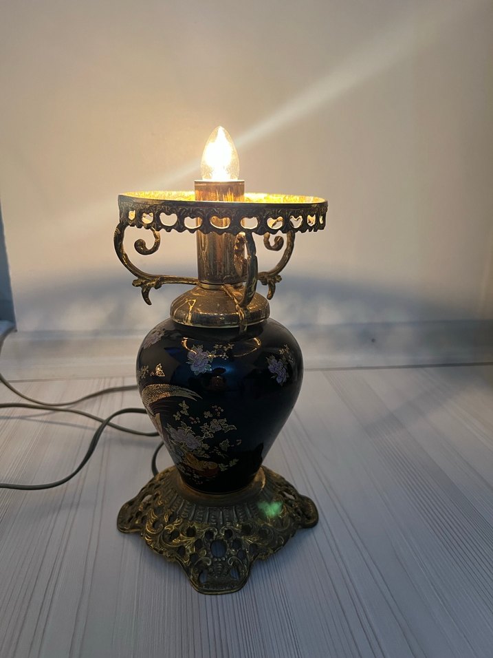 Koyu Renkli Altın Detaylı pirinç porselen antika abajur