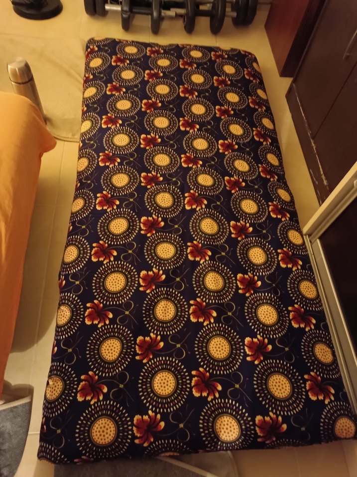 Koyu renkli çok desenli masa örtüsü, dairesel ve çiçek desenleriyle klasik bir görünüm sağlar.
