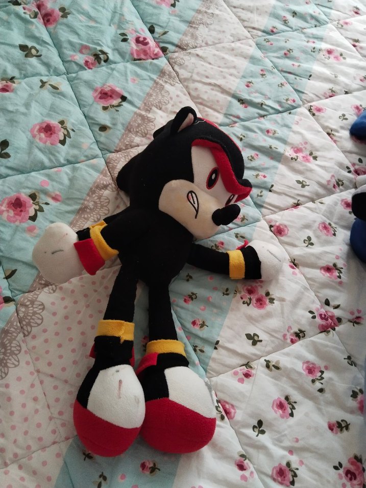 Kırmızı, siyah, beyaz ve sarı detaylara sahip koyu renkli çok renkli peluş oyuncak. Yumuşak ve sarılabilir yapıda. sorunları var dikkatli bakiniz