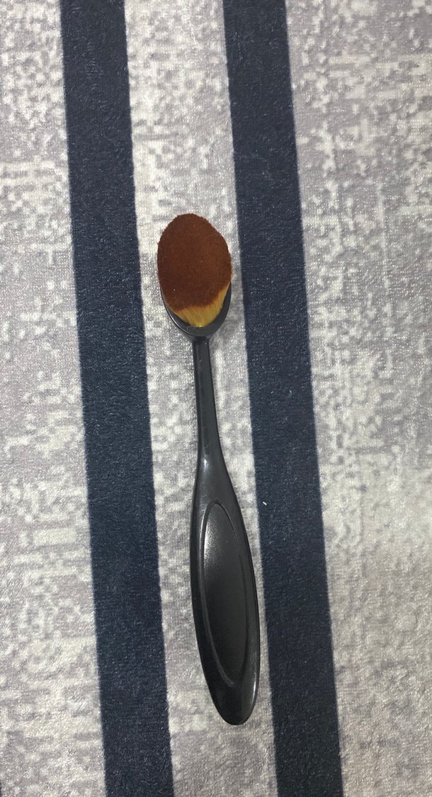 Koyu renk saplı, bej tonlarında oval fırça başlığı olan makyaj fırçası, pürüzsüz uygulama sağlar. ️
