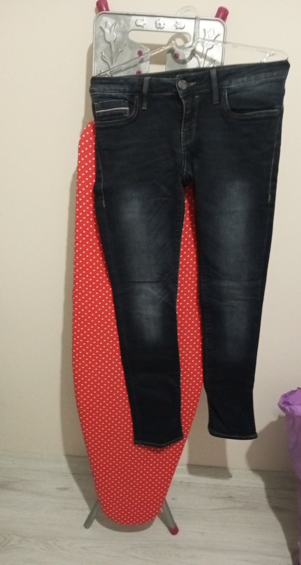 Koyu renkli, sıkı kesim kadın kot pantolon. Günlük kullanım ve sokak tarzı için uygundur. Tokalı detaylıdır.