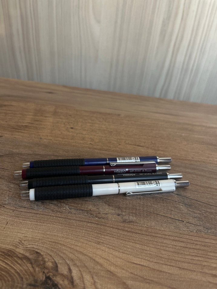 Koyu renkli uçlu kalemlerden oluşan set, rahat tutuş ve tıklamalı mekanizmaya sahiptir. ️