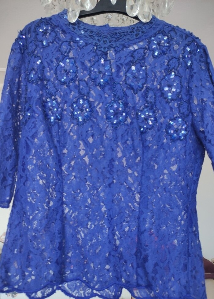 Ürünü hiç kullanmadım çok şık, işlemeli harika ağır bir dantel bluz. dolabımı boşaltıyorum o yüzden Uygun fiyata veriyorum. 38 , 44 beden aralığındaki herkese olur. Orijinali pazarda bile 1.000 TL