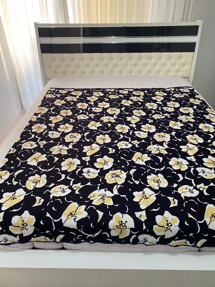 Koyu zemin üzerine sarı çiçek desenli kumaş boy:173 cm genişlik:147 cm