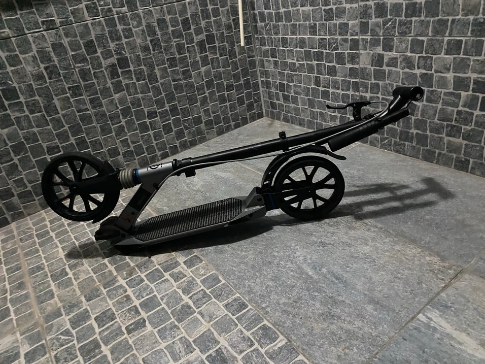 Koyu siyah renkte, sağlam çerçeveli ve büyük tekerlekli çocuk scooterıdır. Kaymaz ayak platformu ve kolay katlanabilir yapısı vardır.