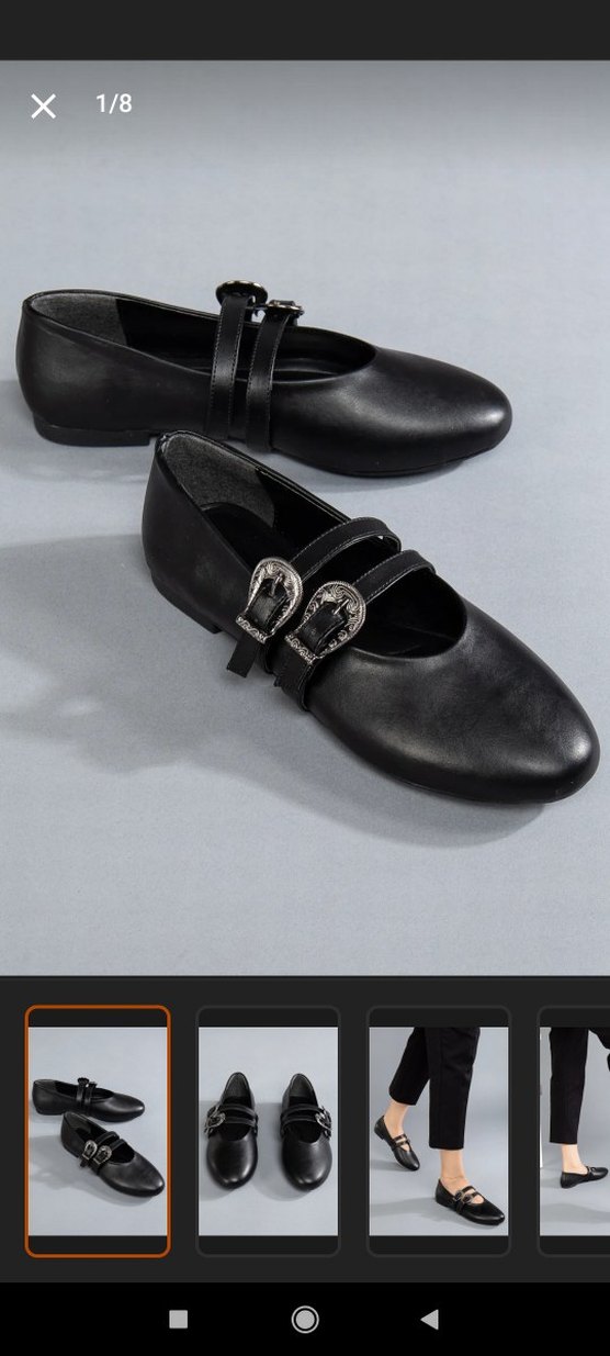 Çift tokalı kayışlara sahip siyah deri goth tarzı babetler, düz ve desen içermeyen yüzeye sahiptir.
