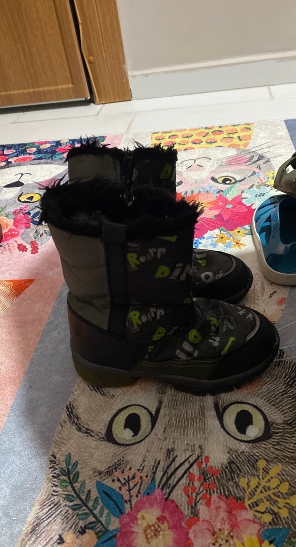 Koyu siyah desenli, rock punk tarzı erkek botları. Kauçuk malzeme, cırt cırtlı ve tüylü detaylara sahip.