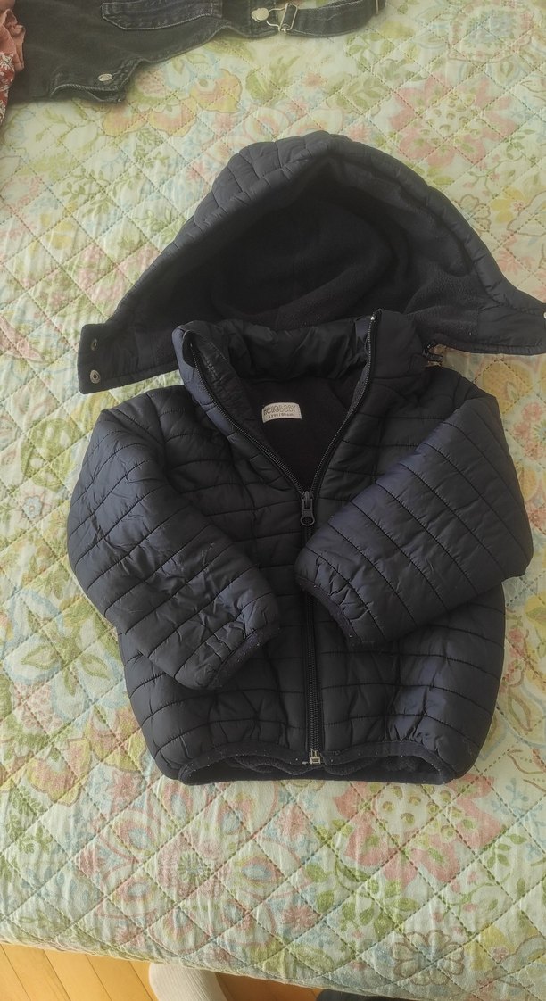 Koyu siyah, kapüşonlu ve fermuarlı erkek çocuk montu. Yumuşak ve sıcak kumaştan, sade ve sokak tarzı görünüme sahip.